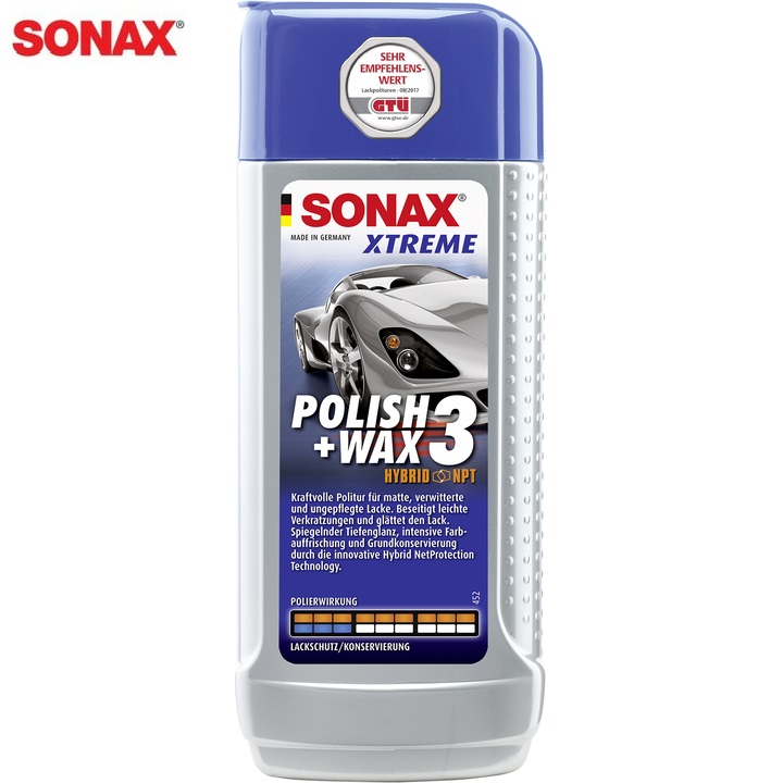 Thông số kỹ thuật Xoá Xước-Đánh Bóng-Bảo Vệ Sơn Xe 3 Trong 1 Dạng Lai SONAX Xtreme Wax 3 in 1 Hybit NPT 202100 (250ml)