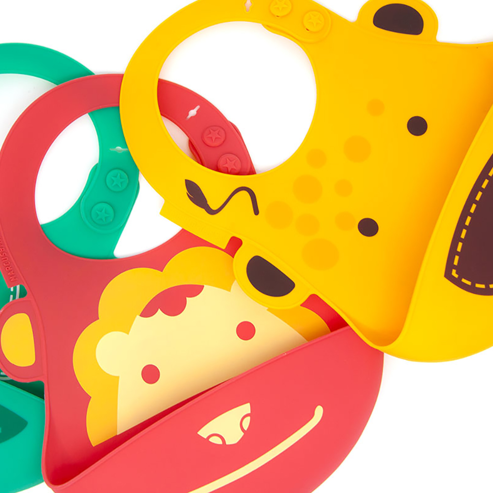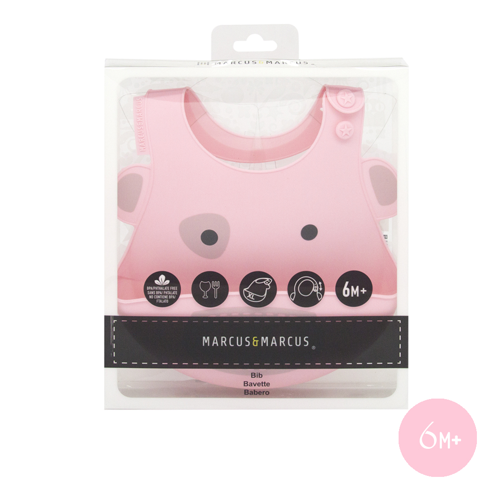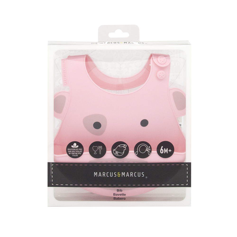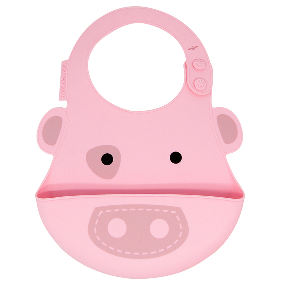 Yếm silicon ăn dặm Marcus & Marcus được thiết kế hiện đại, tiện lợi, đặc biệt thoải mái, dễ dàng cho bé sử dụng, khuyến khích bé tham gia tích cực vào bữa ăn. Họa tiết theo chủ đề những con vật tinh nghịch, ngộ nghĩnh như sư tử Marcus, hươu cao cổ Lola, heo con Pokey, cá voi Willo, voi con Ollie và hà mã Lucas với màu sắc đa dạng, sinh động làm cho bé thích thú hơn với mỗi bữa ăn. Bé sẽ được khám phá chơi đùa với đồ ăn thỏa thích mà không lo bị dính bẩn, kích thích sự thèm ăn và giúp bé ăn ngon miệng hơn.
