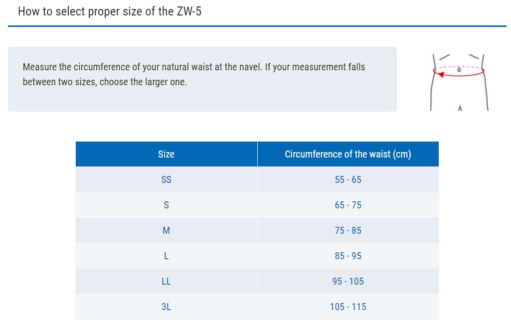 Thông số kỹ thuật ZAMST ZW-5 (Lower back support) Đai hỗ trợ bảo vệ vùng lưng thấp